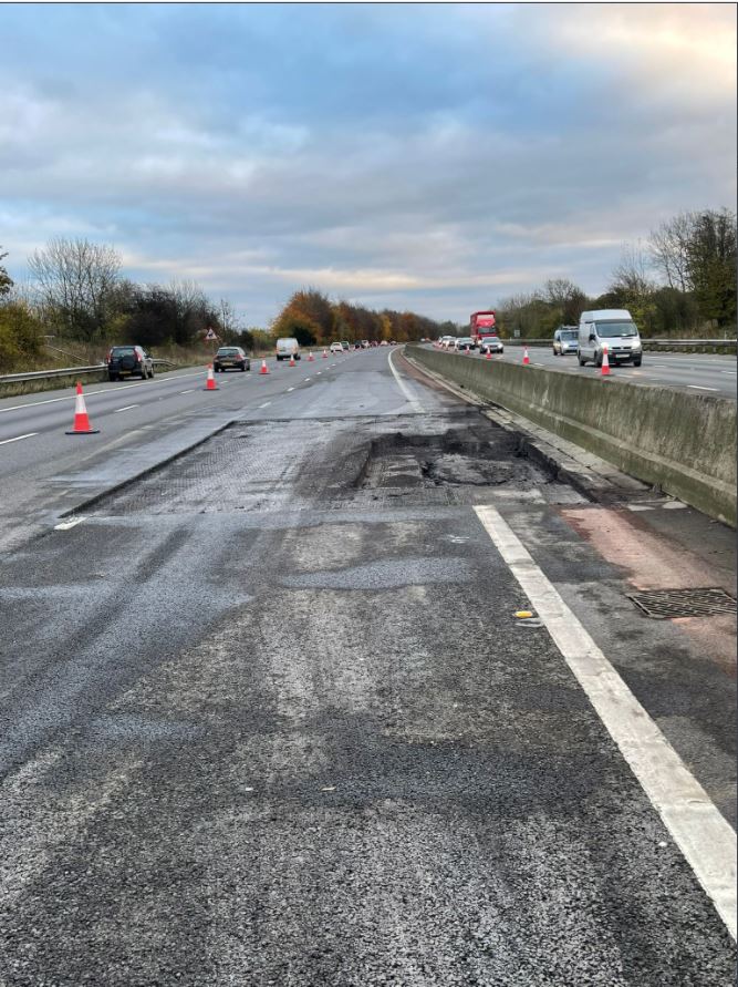 UPDATE….Specialist contractors have worked throughout the weekend to repair a carriageway defect on the #M4 west J15-J14 near #Swindon. The repair has been completed and all lanes reopened in both directions. Thank you for your patience if you were caught up in the delays.