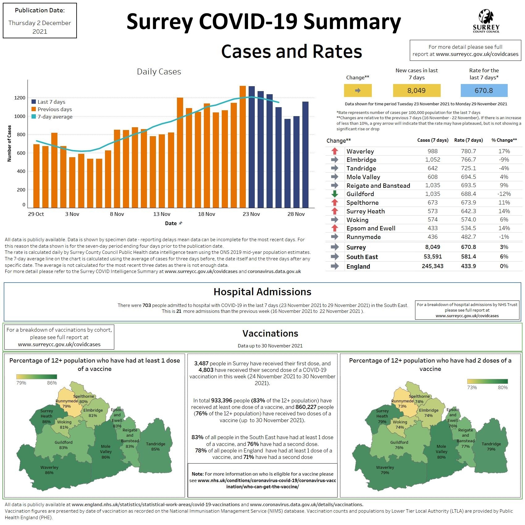 We are continuing to see very high Covid rates in Surrey, and following the emergence of the newly identified Omicron variant, now more than ever we need to do everything we can to prevent the spread of the virus.