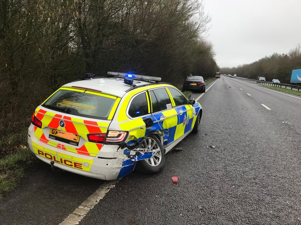 The image below is of a daytime incident, where a patrol car was struck from behind whilst protecting a broken down vehicle.