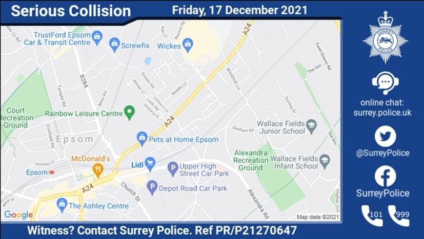 We are appealing for the public’s help following a fatal collision involving a pedestrian and a lorry on East Street in Epsom at 7:30am this morning.