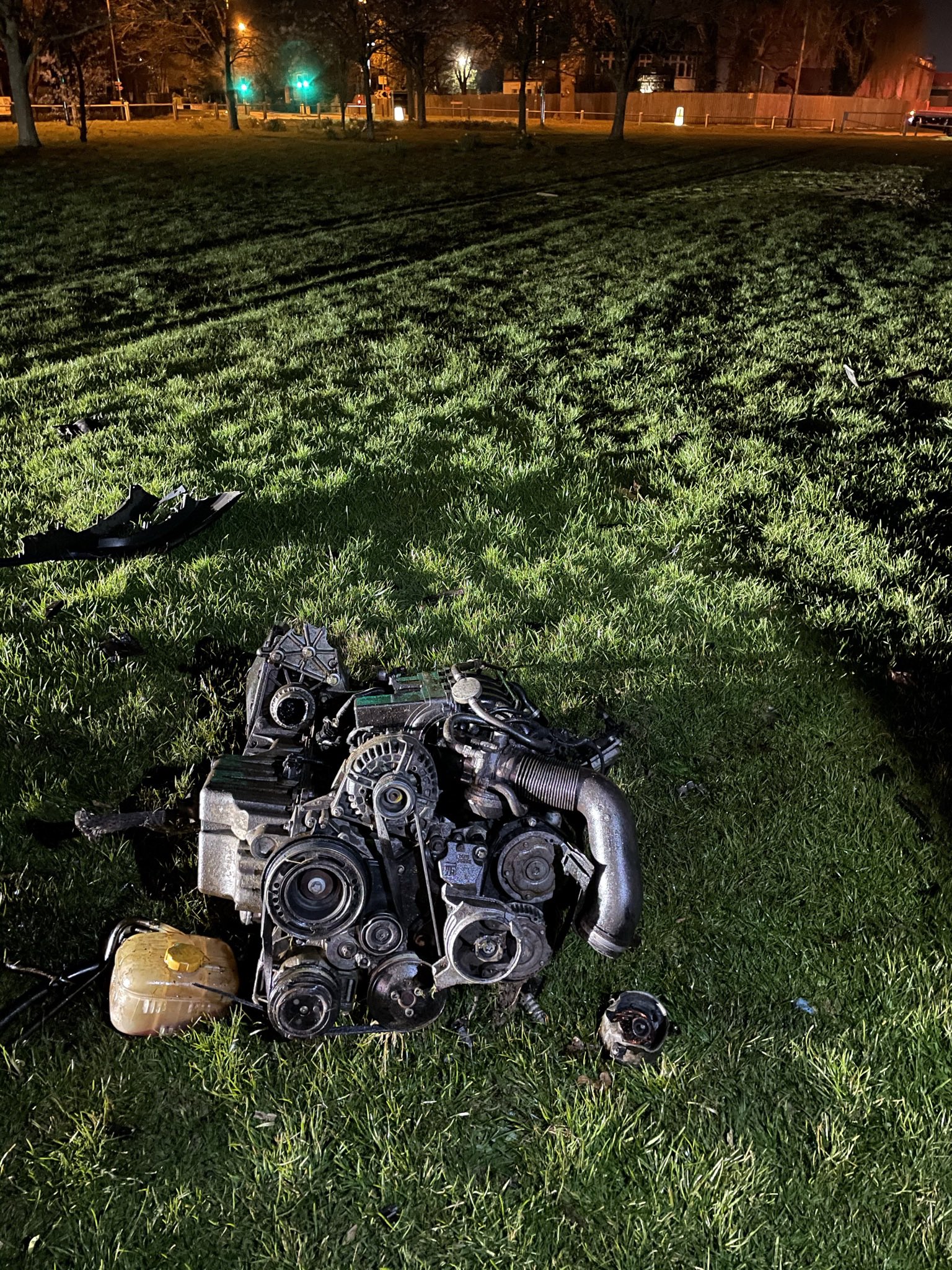 The vehicle had left the road, a 30mph limit, by over 70 meters, hitting a tree with such force the engine block was totally removed, the vehicle continued another 20 meters!