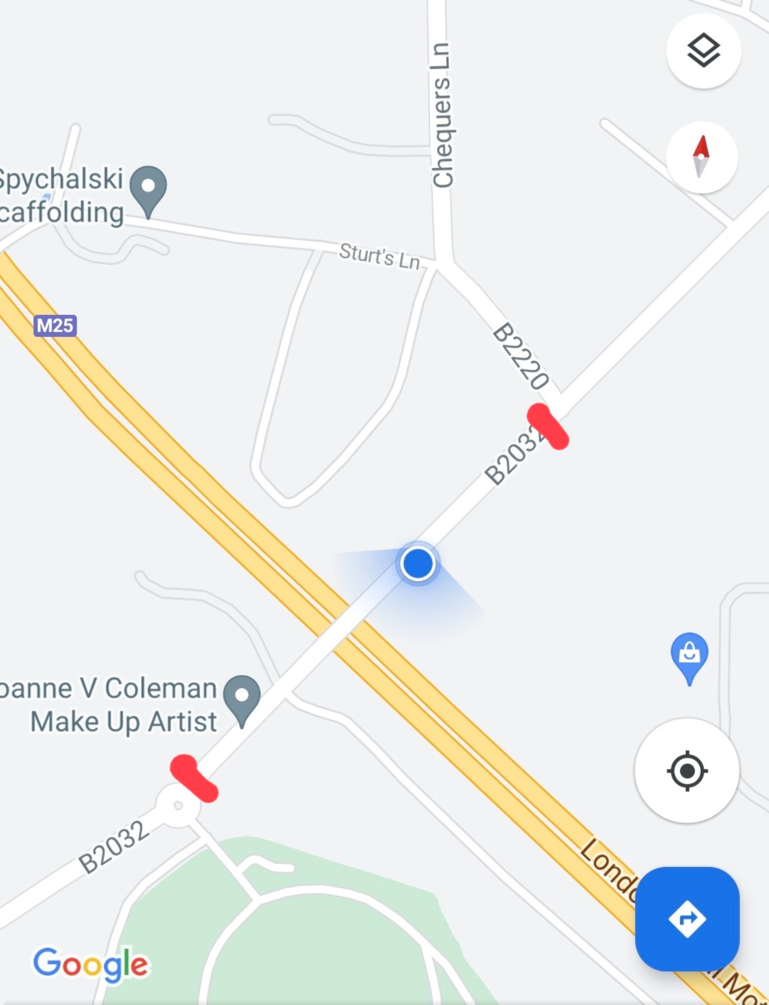 B2032 Dorking Road between Chequers Lane and Pfizers roundabout, Headley is closed due to a serious collision and will be closed for some time.