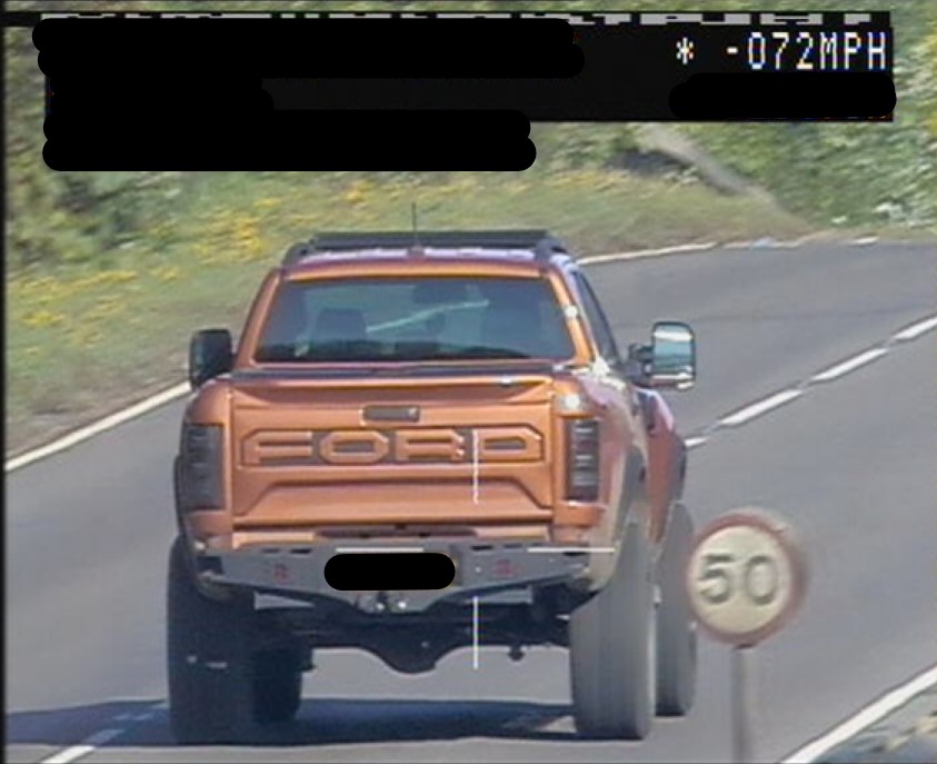 Not only did the driver of this pick up fail to notice the huge marked speed enforcement van on the opposite side of the road, it looks like that 50mph sign wasn’t clear enough for them either.